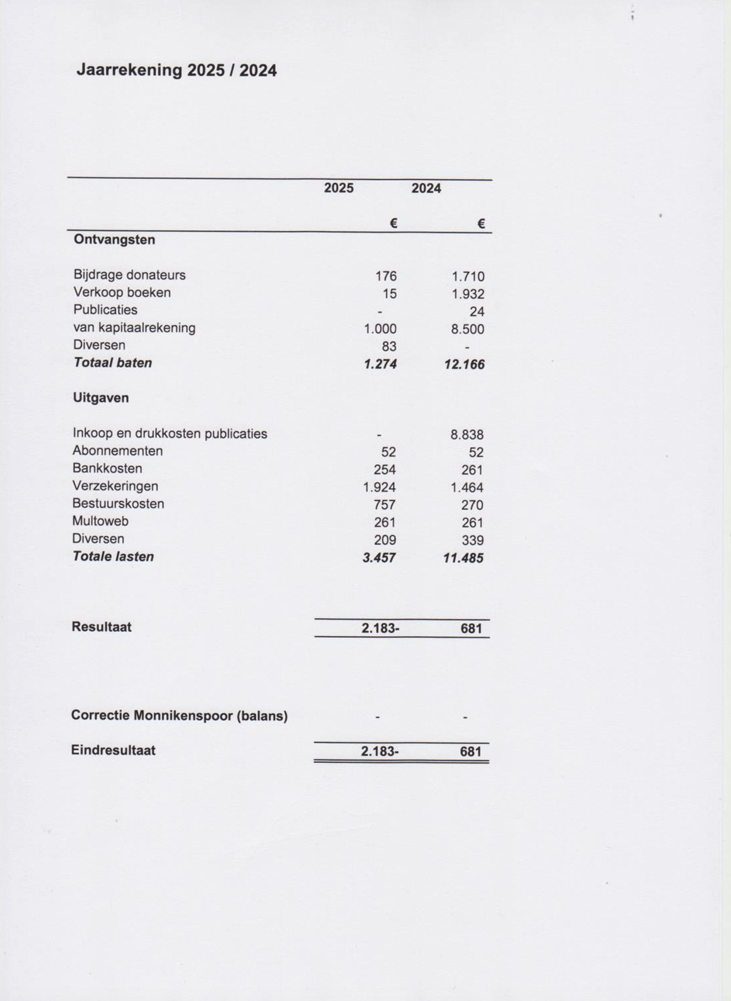 Toelichting bij de jaarrekening 2025 Het boekjaar 2025 heeft geen nieuwe projectinitiatieven opgeleverd. Derhalve zijn er enkel min of meer statische uitgavenposten, zoals voor verzekeringen, bestuurskosten, administratie en abonnementen. Het bestuur is in gesprek met externe partijen over mogelijke toekomstige ontwikkelingen van de stichting. Zodra daarover meer concrete stappen kunnen worden gezet zal dat via mailing en website naar buiten worden gebracht